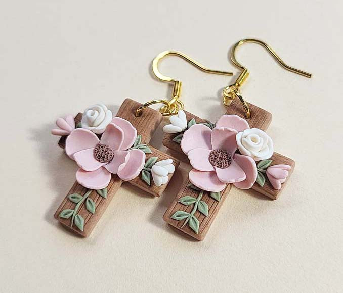 Easter flower cross earrings are a blend of faith and fashion. They are handcrafted from polymer clay with surgical stainless steel ear wires. These earrings are lightweight and comfortable to wear. They are perfect meaningful gift for Christian believers!
